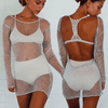 Produktdetails: Leicht transparentes & rückenfreies Kleid. Perfekt geeignet für an den Strand. Bikini Cover Up Dress. Rückenfreies shiny Mesh Kleid.