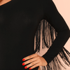 Produktdetails: Bodysuit / Body mit Fransen auf einer Seite. Asymmetrischer Body mit Ärmel auf einer Seite. b