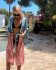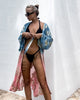 Produktdetails: Tauche ein in die faszinierende Welt unseres Kimonos in hellblau-rosa. Dieser halblange Kimono mit goldenen gestickten Details und einem farbigen Batik-Farbverlauf verleiht deinem Outfit einen Hauch von Romantik im Boho-Stil. Egal, ob du dich auf ein Festival, einen entspannten Boho-Look oder einen stilvollen Strandbesuch vorbereitest, dieser Kimono ist die perfekte Wahl. Mit dem Gurt zum Binden auf Taillenhöhe kannst du deinen eigenen Stil kreieren und dich in diesem wunderschönen Kimono rundum wohl fühlen. Geniesse den Zauber der Farben und strahle in diesem einzigartigen Kleidungsstück!