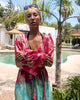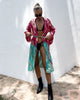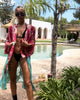 Lass dich von unserem atemberaubenden Kimono in blau-pink bezaubern. Der halblange Kimono mit goldenen gestickten Details und farbigem Batik-Farbverlauf verleiht deinem Outfit einen Hauch von Boho und Festival Fashion. Ein absoluter Hingucker für dein nächstes Festival oder den stilvollen Strand-Look. Mit dem Gurt zum Binden auf Taillenhöhe kannst du deinen eigenen Look kreieren und dich in diesem wunderschönen Kimono rundum wohl fühlen. Mach dich bereit für unvergessliche Abenteuer.