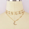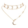 Produktdetails: Feine Choker Halskette mit eng anliegender Kette und längerer Halskette mit Halbmond Symbol. Goldene doppelte Choker Kette mit Stern und Mond Symbolen.