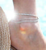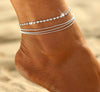 Produktdetails: Fusskette mit 3 Ketten und einer Glitzer Kette. Feine silberne Ketten und eine Kette aus Strasssteinen. Glitzer Fussketten im Set.