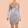 Produktdetails: Einzigartiges Glitzerkleid aus Pailletten und mit Arm-Handschuhen dazu. Festival und Party Outfit.
