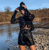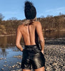 • Produktdetails: Kurze High-Waist Kunstleder Shorts mit Rüschen / Spitzen und Gürtel zum Binden.