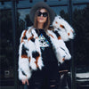 Produktdetails: Spezieller Kunstpelz Mantel in Weiss mit Braun. Der Eye-Catcher!
