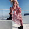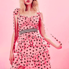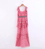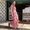 Produktdetails: Lange Kleid im Vokuhila Schnitt (vorne kurz, hinten lang). Mit Rüschen und Herz Symbolen. Spaghetti Träger zum Binden.