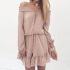 Material: Chiffon Grösse: S, M, L Farbe: rosa / grün Produktdetails: Lockeres schulterfreies Bohemian Kleid zum Schnürren auf der Vorderseite.