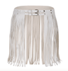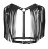 Produktdetails: Kunstleder Körpergürtel / Körpergeschirr / Harness. Rock mit Fransen und Oberteil mit Fransen über den Schultern.