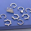 Produktdetails: Set aus diversen Ohrringen und 8 unterschiedlichen Ear Cuffs. Ein silbernen Stecker Ohrringe mit Strasssteinen und Spitzen Form, dazu 8 passende Ear Cuff mit Kunstperlen. Modeschmuck Ohrringe Ear Cuff Set.