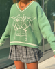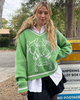 Produktdetails: Pullover mit Sensenmann Motiv in Skizze. Kuscheliger Damen Strickpullover mit V-Ausschnitt und weissem Aufdruck. Fashion Style Sweater hoher Qualität.