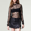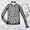 Produktdetails: Transparentes Shirt mit Sternen Print. Schwarzes langarm Mesh Shirt, perfekt als Festival Look.