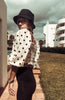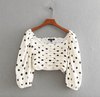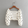 Produktdetails: Shirt / Bluse mit hohen Schultern und schwarzen Punkten.