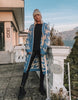 Produktdetails: Kimono / Cardigan mit kariertem Muster. Perfekt für die kalten Wintertage. Langer kuschelige Strickjacke aus Alpaka Material.