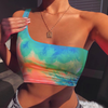 Regenbogen Farben. Einseitiges Ärmel Top.